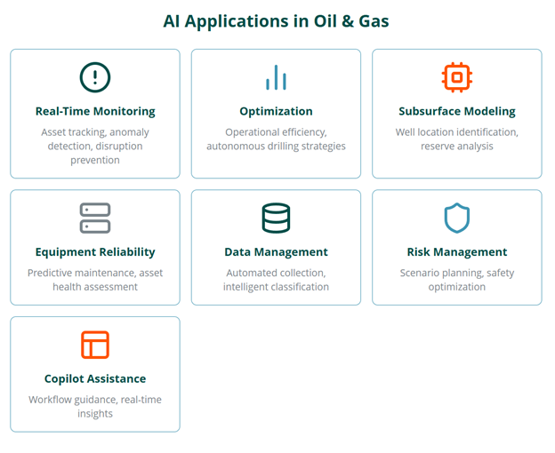 - Reservoir and Subsurface Modeling: AI tools can identify optimal well locations and missed reserves, aiding drilling decisions and resource extraction.