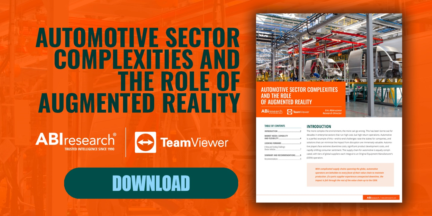 These findings come from ABI Research’s Automotive Sector Complexities And The Role Of Augmented Reality whitepaper sponsored by TeamViewer. Get it today.