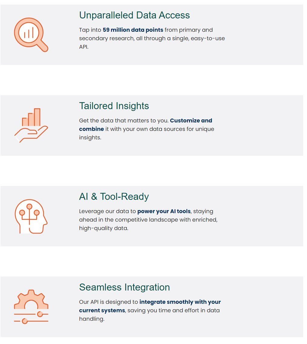 DataStream is our Data-as-a-Service model that provides clients with ongoing access to updated data and insights. DataSteam ensures you make data-informed decisions and remain agile in the ever-shifting technology landscape. With over 59 million data points, this service simplifies data integration for users through a robust Application Programming Interface (API), enabling you to seamlessly integrate data with your company’s existing systems. Our developers will also work with you to ensure the API functions as intended on your end.
