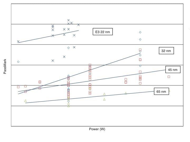 So where is the 22 nm E5? and where will the 14 nm map? They will be off the scale to the upper left, and with tri-gate FinFets, we might see another leap in speed-power performance.