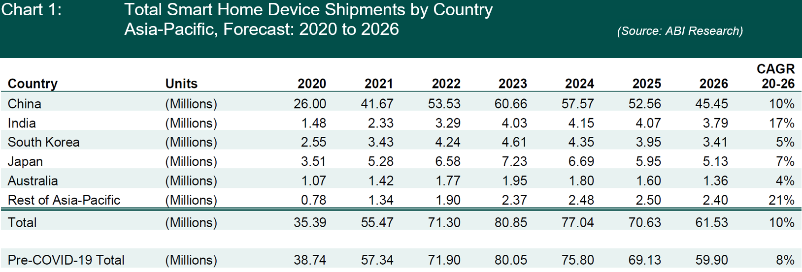 For the latest data on the smart home market in Asia-Pacific and other regions, download ABI Research's Smart Home Hardware market data report.