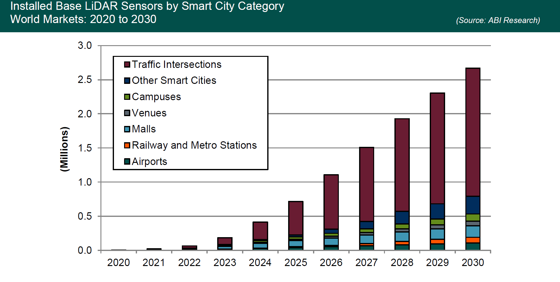 Chart 1: Installed Base LiDAR Sensors by Smart City Category: 2020 to 2030