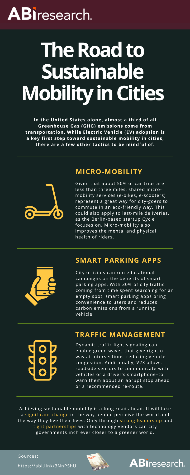 Below is an infographic providing a few ways to make mobility in cities more sustainable.